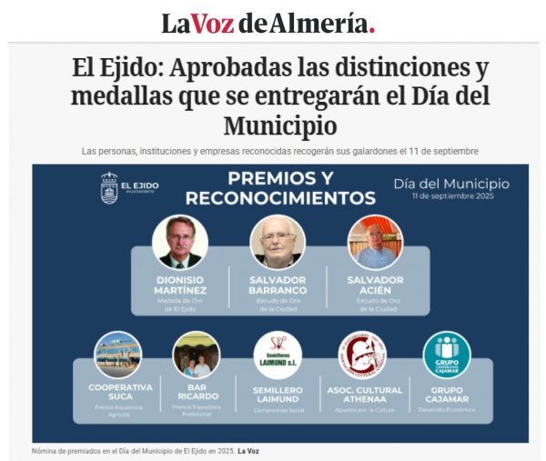 «El Ejido: Aprobadas las distinciones y medallas que se entregarán el Día del Municipio».