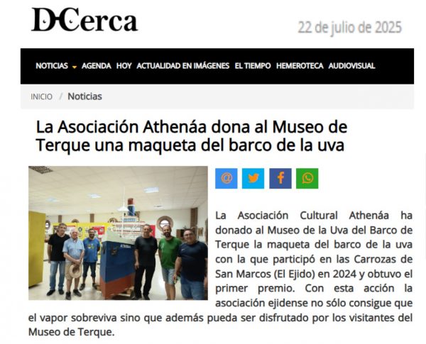 «La Asociación Athenáa dona al Museo de Terque una maqueta del barco de la uva».