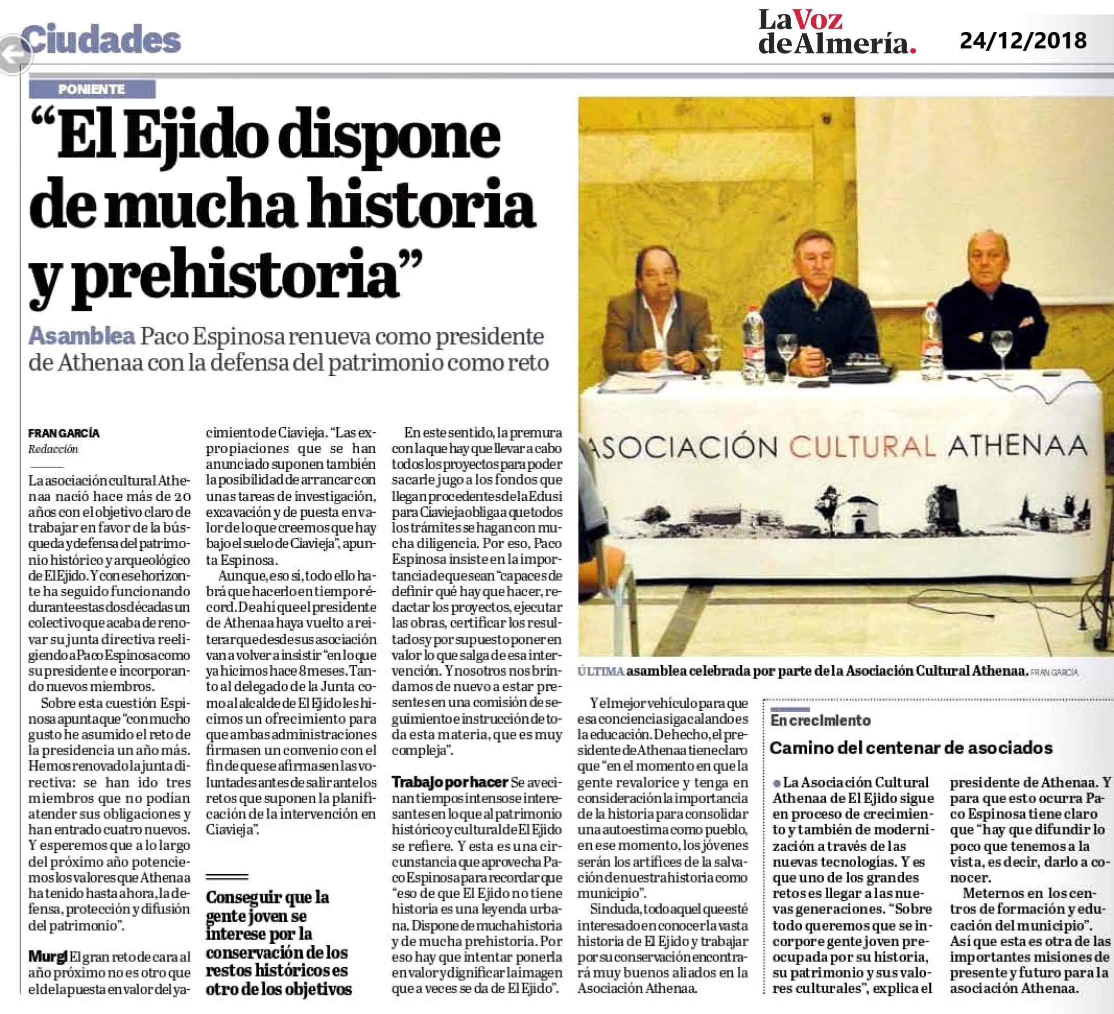 Entre las principales líneas de actuación de la A.C. ATHENÁA están la defensa, protección, recuperación, difusión y fomento del Patrimonio Histórico, Cultural, Arqueológico, y estas actividades en ocasiones son recogidas y difundidas por medios de la prensa a través de artículos periodísticos, donde la asociación aparece como protagonista o titular de la noticia, y en esta sección de nuestra página web no podía faltar la exposición de estos artículos como archivo de nuestra propia hemeroteca y que deseamos pueda contener la mayoría de las publicadas, y así actuar como un termómetro objetivo de nuestras actividades y con la esperanza e ilusión que sean un testigo de los resultados y frutos a favor de nuestro patrimonio.