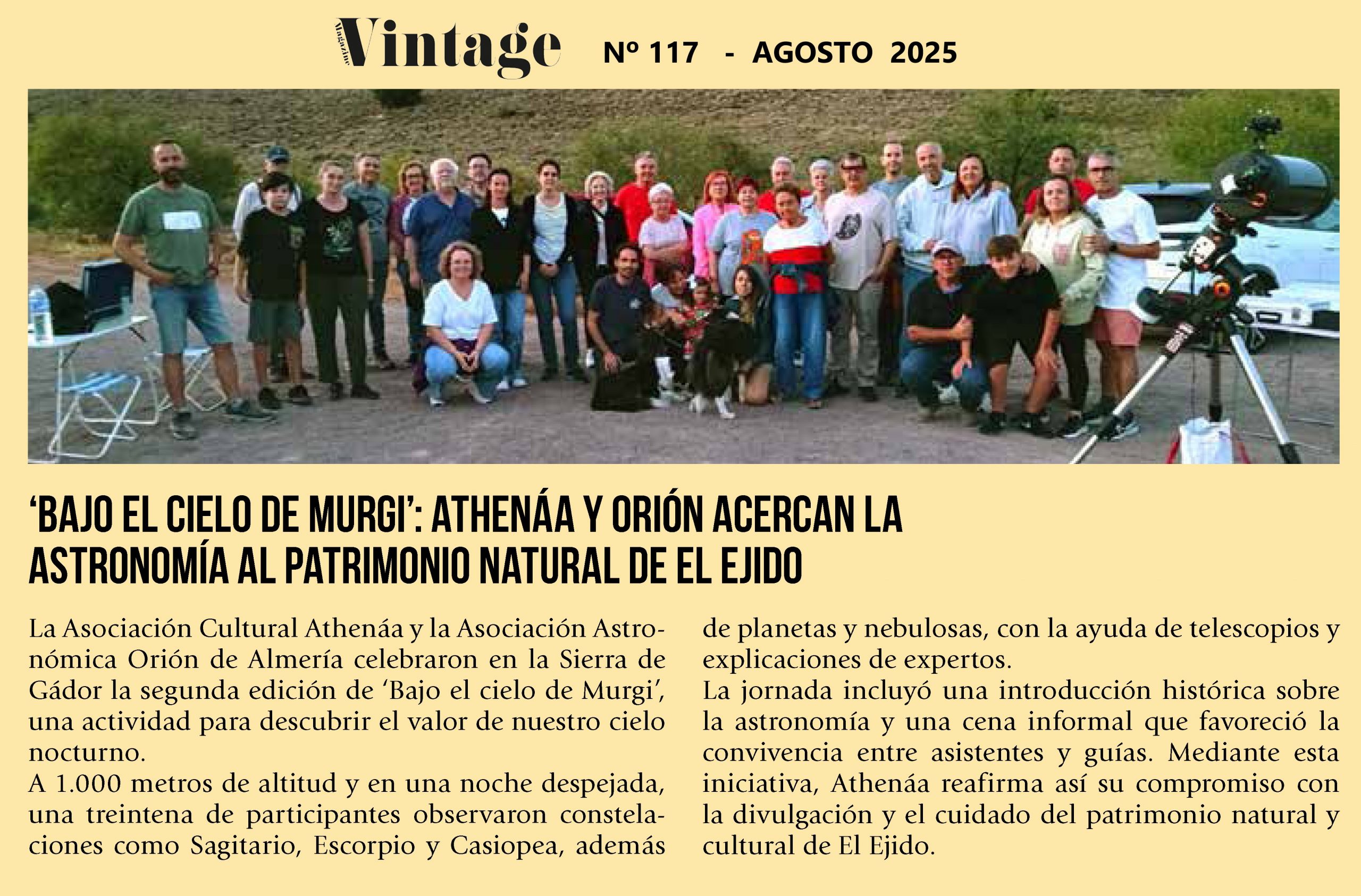 «Bajo el cielo de Murgi: Athenáa y Orión acercan la astronomía al patrimonio natural de El Ejido».