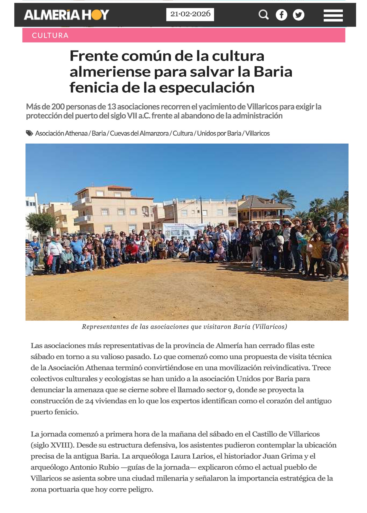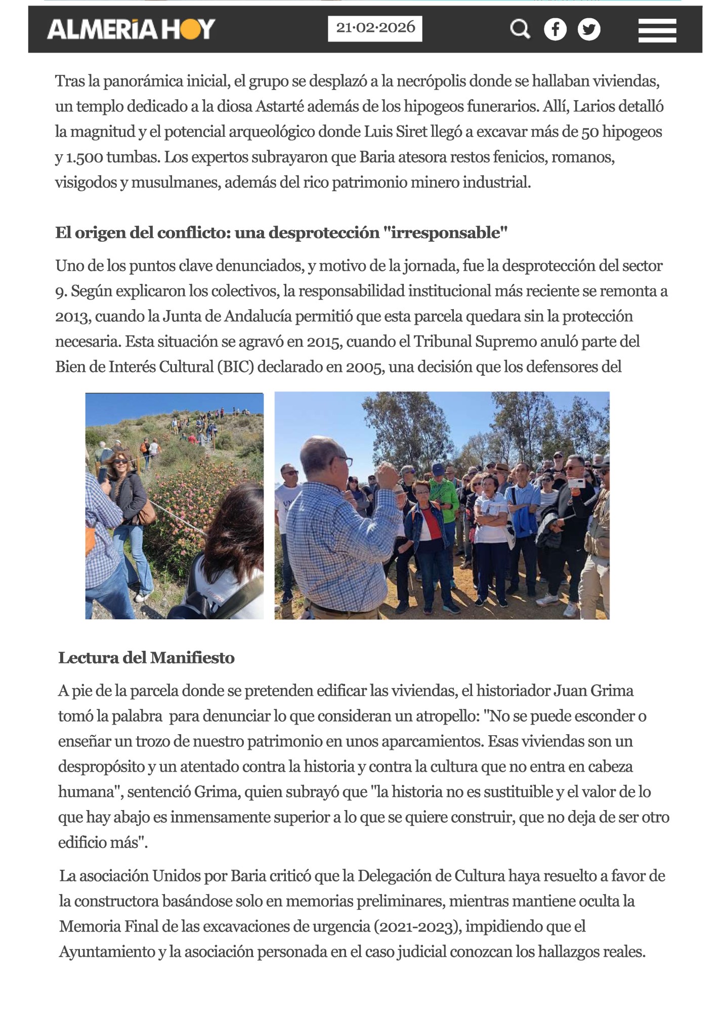 Frente común de la cultura almeriense para salvar la Baria Fenicia de la especulación.