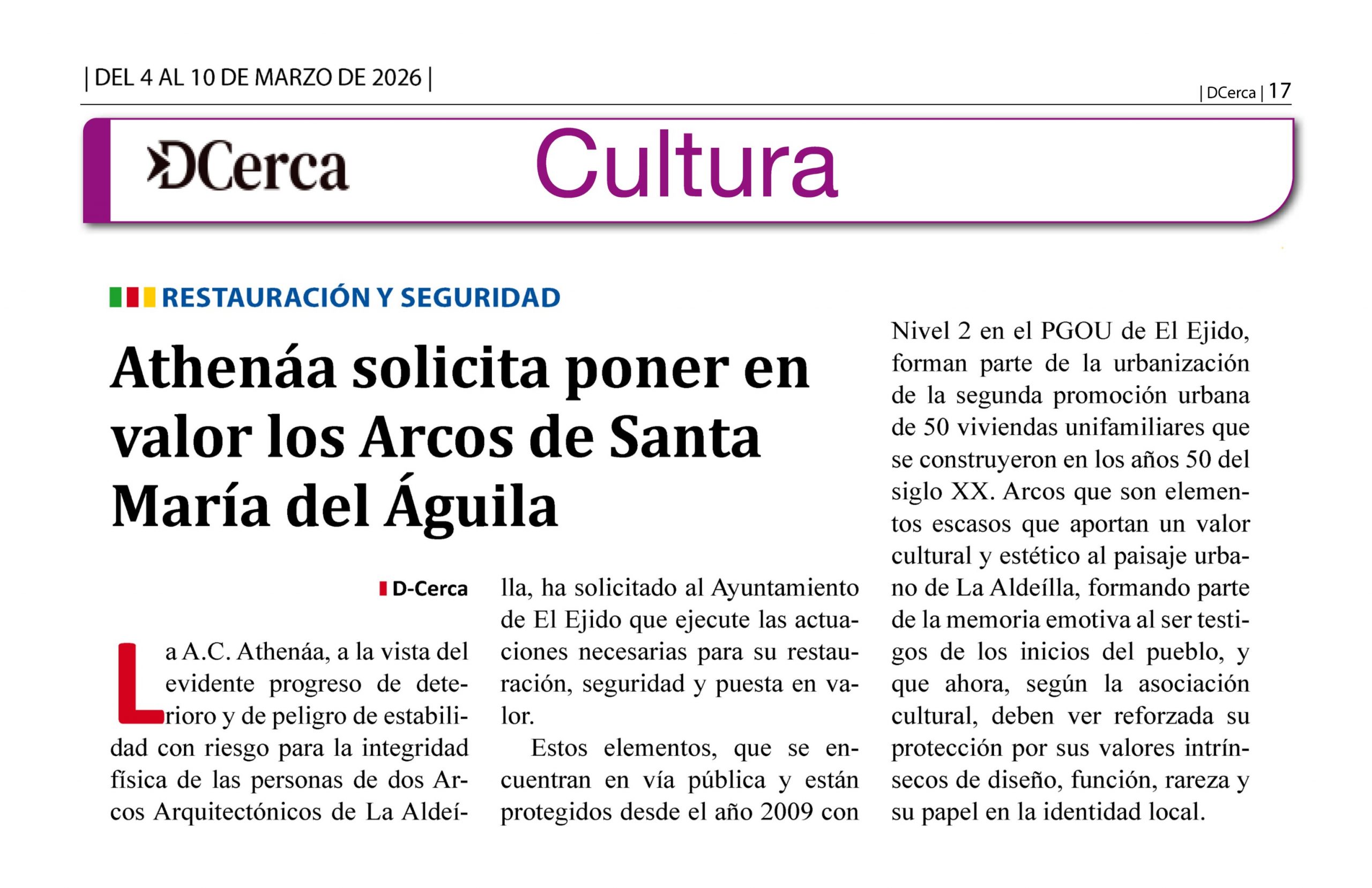 «Athenáa solicita poner en valor los Arcos de Santa María del Águila».
