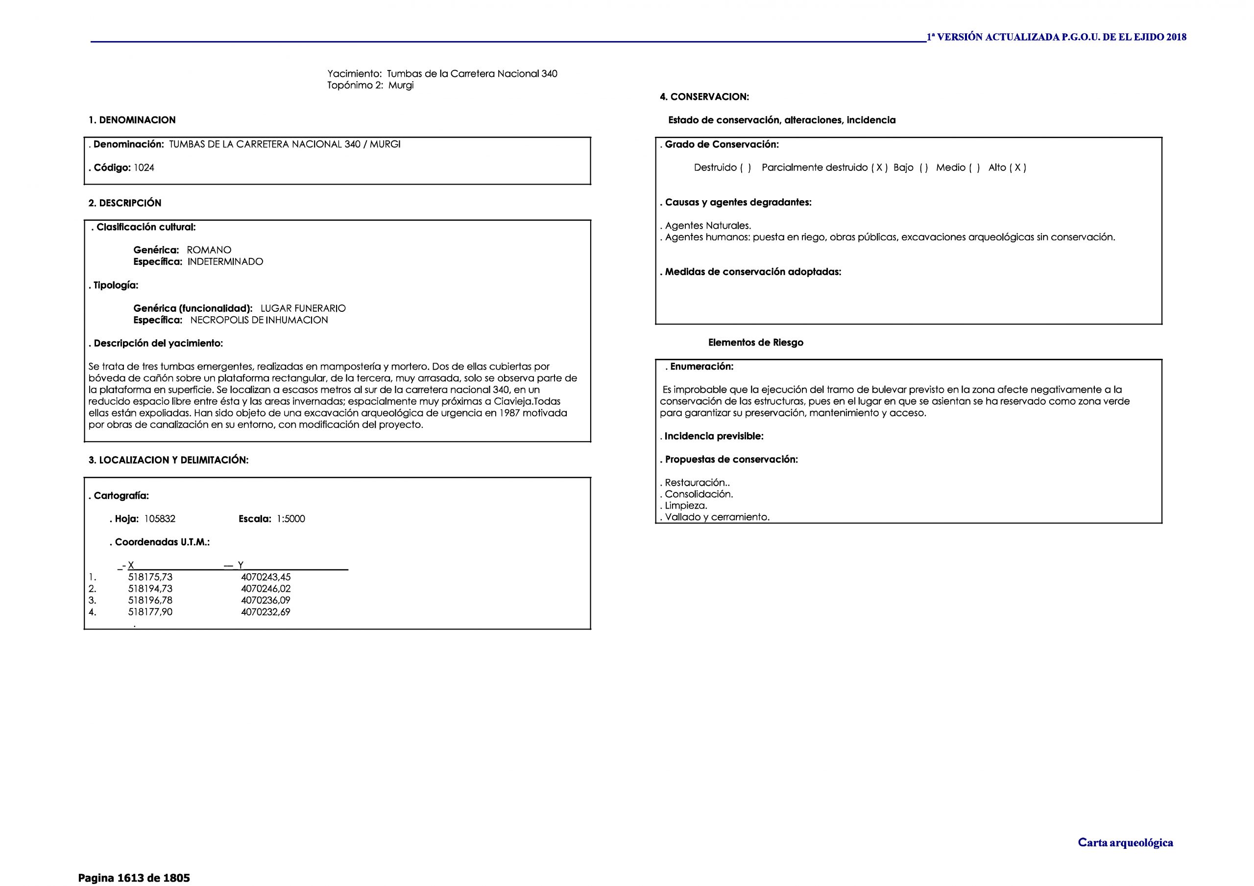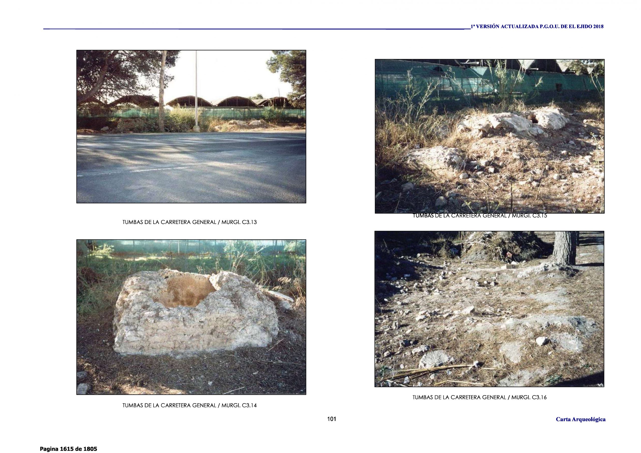 En la actual Avenida El Treinta de El Ejido (antigua carretera Málaga-Almería), frente a la antigua nave de Canalex, se localizan junto al arcen sur las tumbas romanas, un conjunto que probablemente formó parte de una necrópolis más extensa vinculada a la ciudad de Murgi. Siguiendo la tradición romana de situar las tumbas fuera de las zonas residenciales, a ambos lados de las calzadas principales que salían de las puertas de entrada a las ciudades, para que los transeúntes pudieran admirarlos y así mantener viva la memoria de los difuntos. Una calzada que coincidiría en parte con la actual avenida y que probablemente correspondería con el tramo de la antigua vía romana que conectaba Cástulo (cerca de la actual Linares, Jaén) con Abdera (Adra, Almería) documentada en el Itinerario de Antonino (finales del siglo III d.C.), constituyendo una de las principales arterias de comunicación en la Hispania romana del sureste.