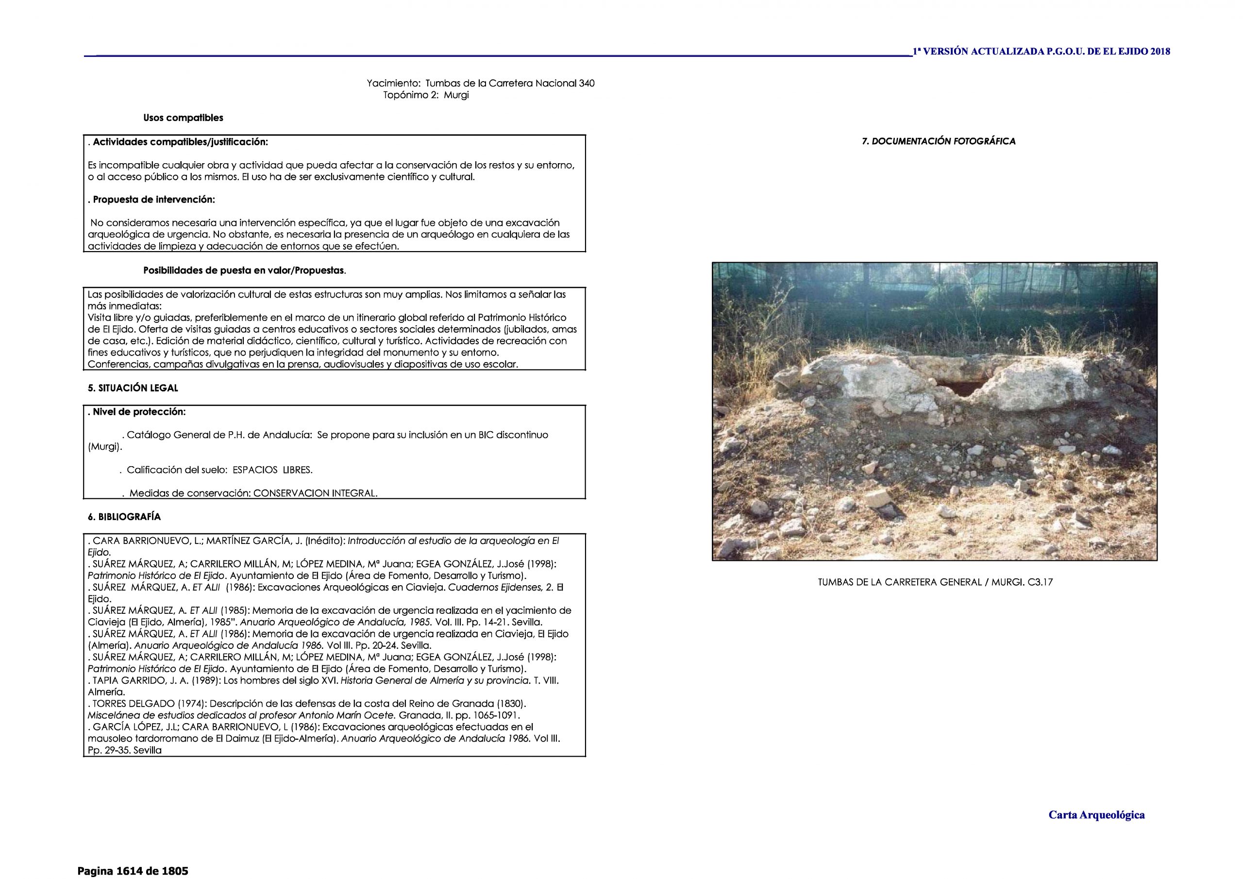 A la vista del reportaje fotográfico del estado actual de las tumbas es muy evidente su deterioro, y más si las comparamos con las fotos realizadas en el año 2000 para la creación de la Carta Arqueológica del PGOU de El Ejido, innegable la evidencia del deterioro sufrido con el paso del tiempo