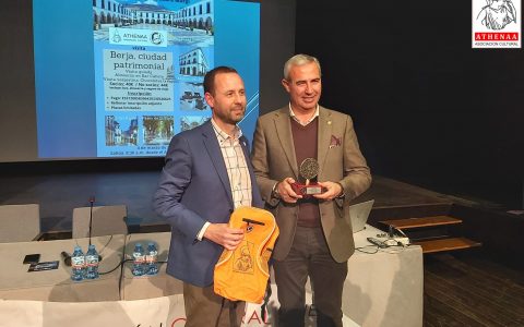 A continuación, Antonio Mira toma la palabra en nombre de Athenaa para agradecer el premio al jurado y felicitar al resto de premiados, y como anécdota del éxito de la representación del mundo parralero refiere que ya no le queda nadie en España que no le haya llamado o felicitado por la carroza.