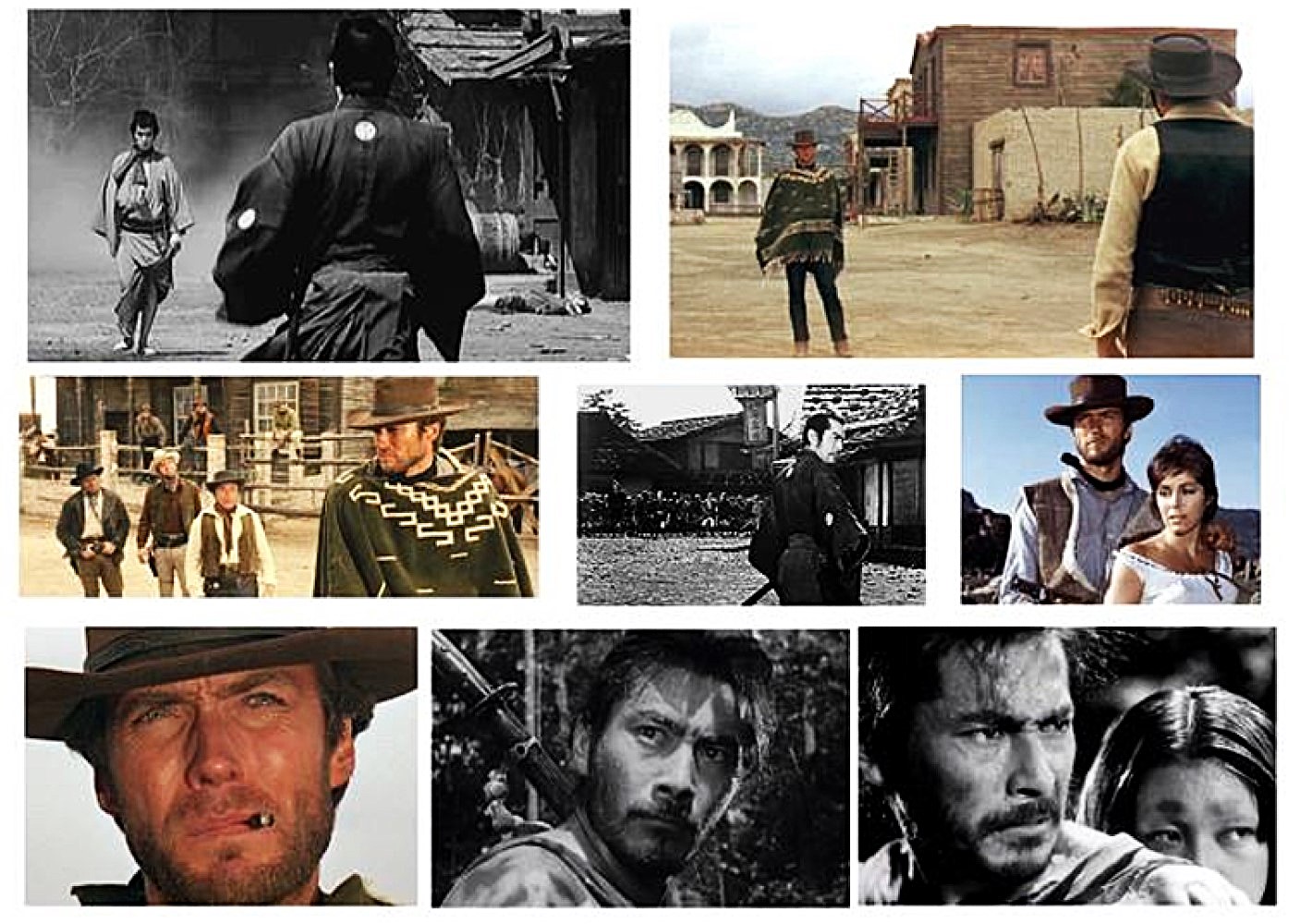 Un reperterio de lenguaje cinematográfico que ha creado un estereotipo repetido en multitud de filmografía, pero que curiosamente es una copia de la estética de los planos de una película anterior de un género y ambiente diferente, como es la película japonesa Yojimbo de Akira Kurosawa, sobre un mercenario que llega a un poblado del Japón feudal. Sergio Leone fue denunciado por copiarse y sentenciado a pagar a Kurosawa el 15% de las ganancias por derecho de autor, dándose la circunstancia que el director japones reconoció haber ganado más dinero por la sentencia que por su propia película.