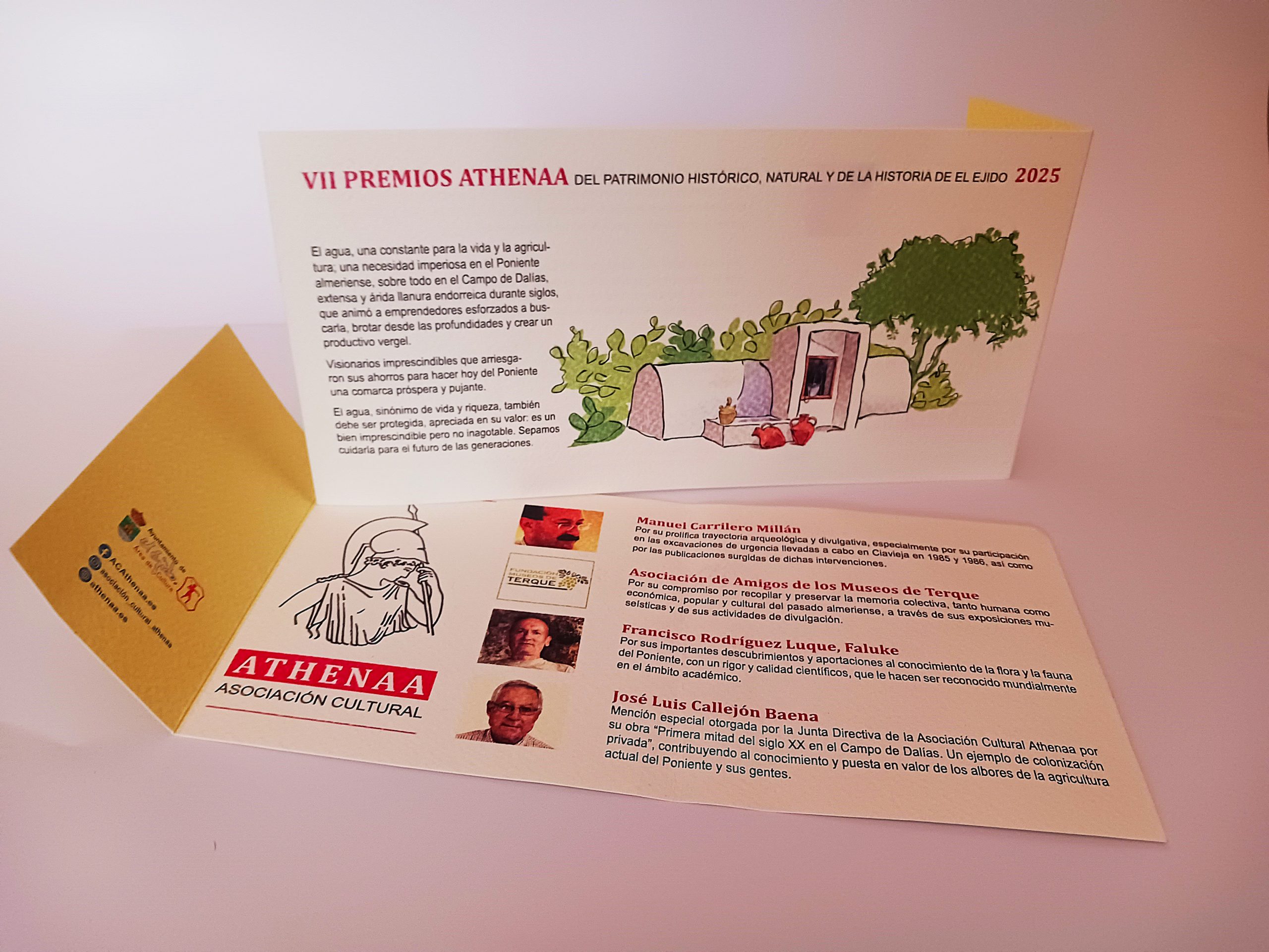 En esta séptima edición de la entrega de los Premios Athenáa 2025, un reencuentro de hermandad para los reconocimientos y la necesidad de difundir y poner en valor los elementos de nuestro patrimonio histórico y natural, este año la Gala ha tenido como contexto temático «el agua» por su importancia como elemento catalizador de la evolución histórica del municipio ejidense.