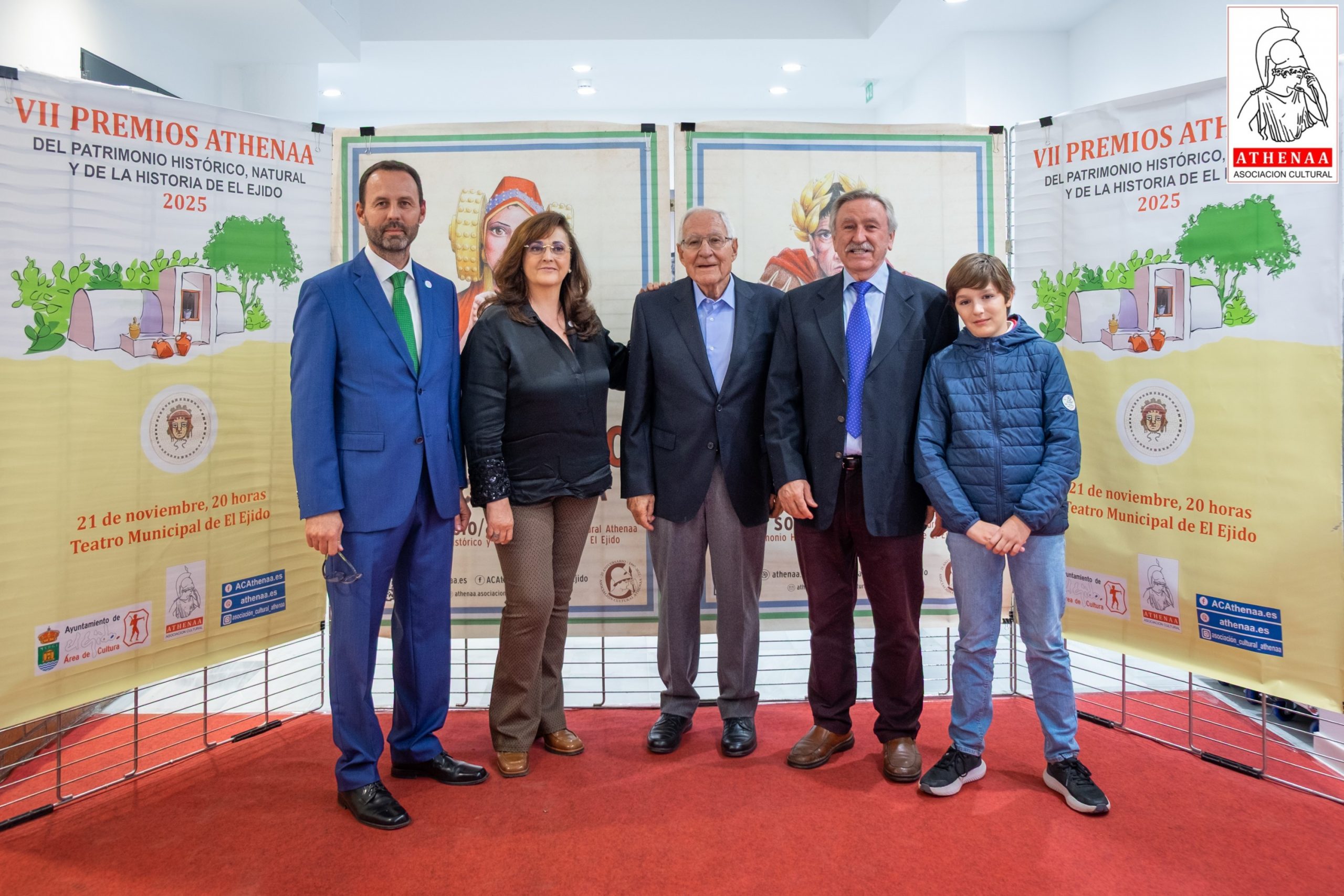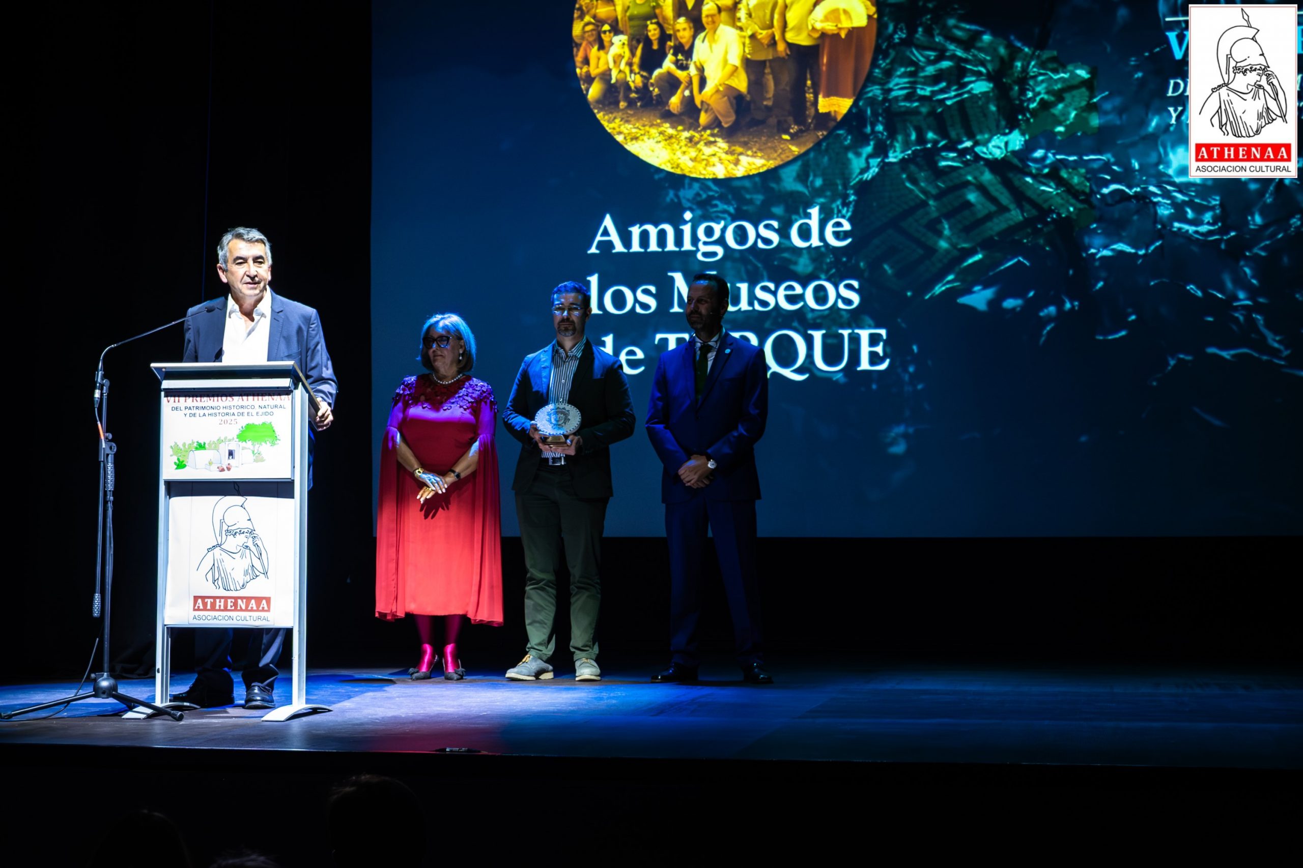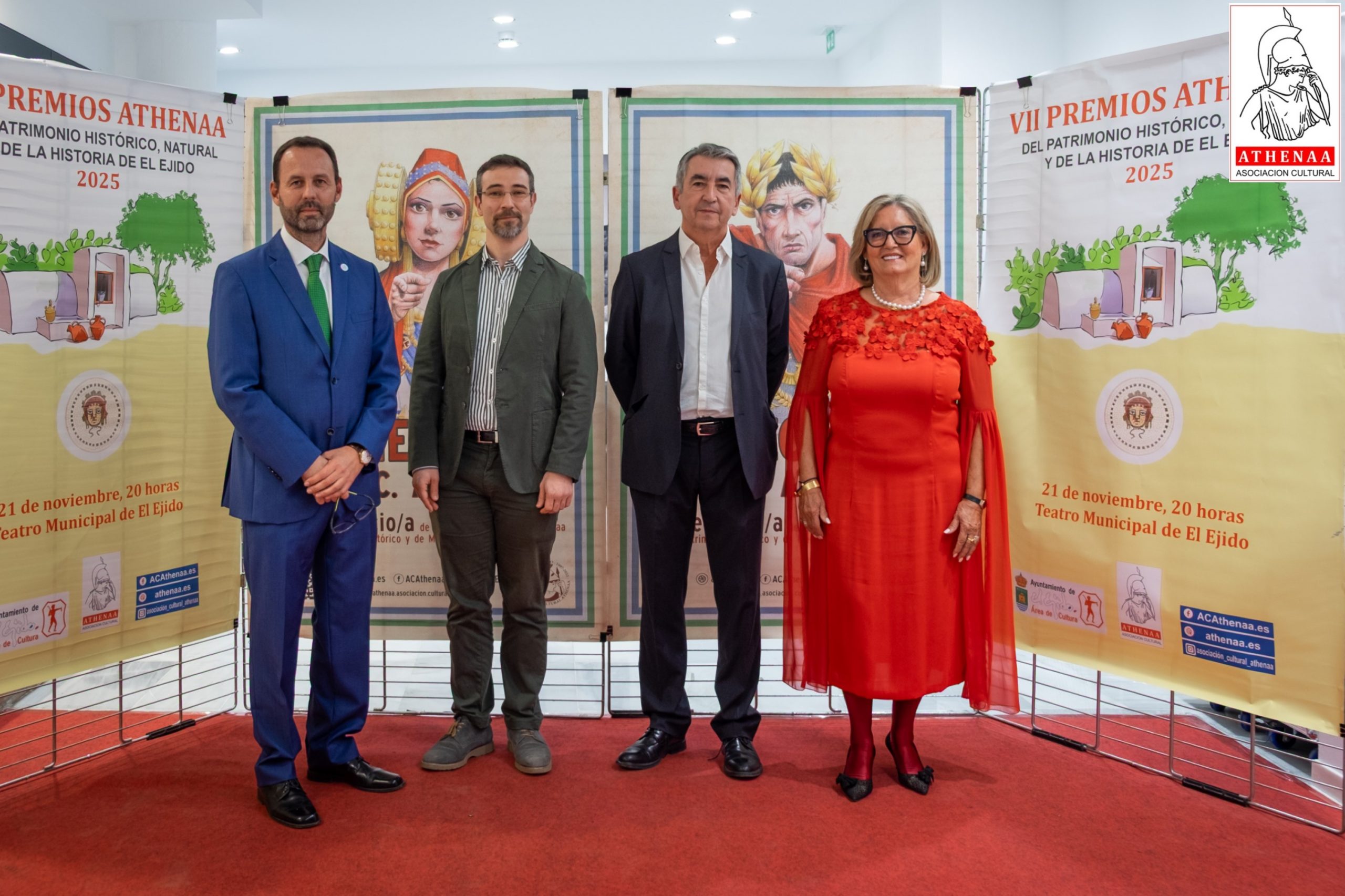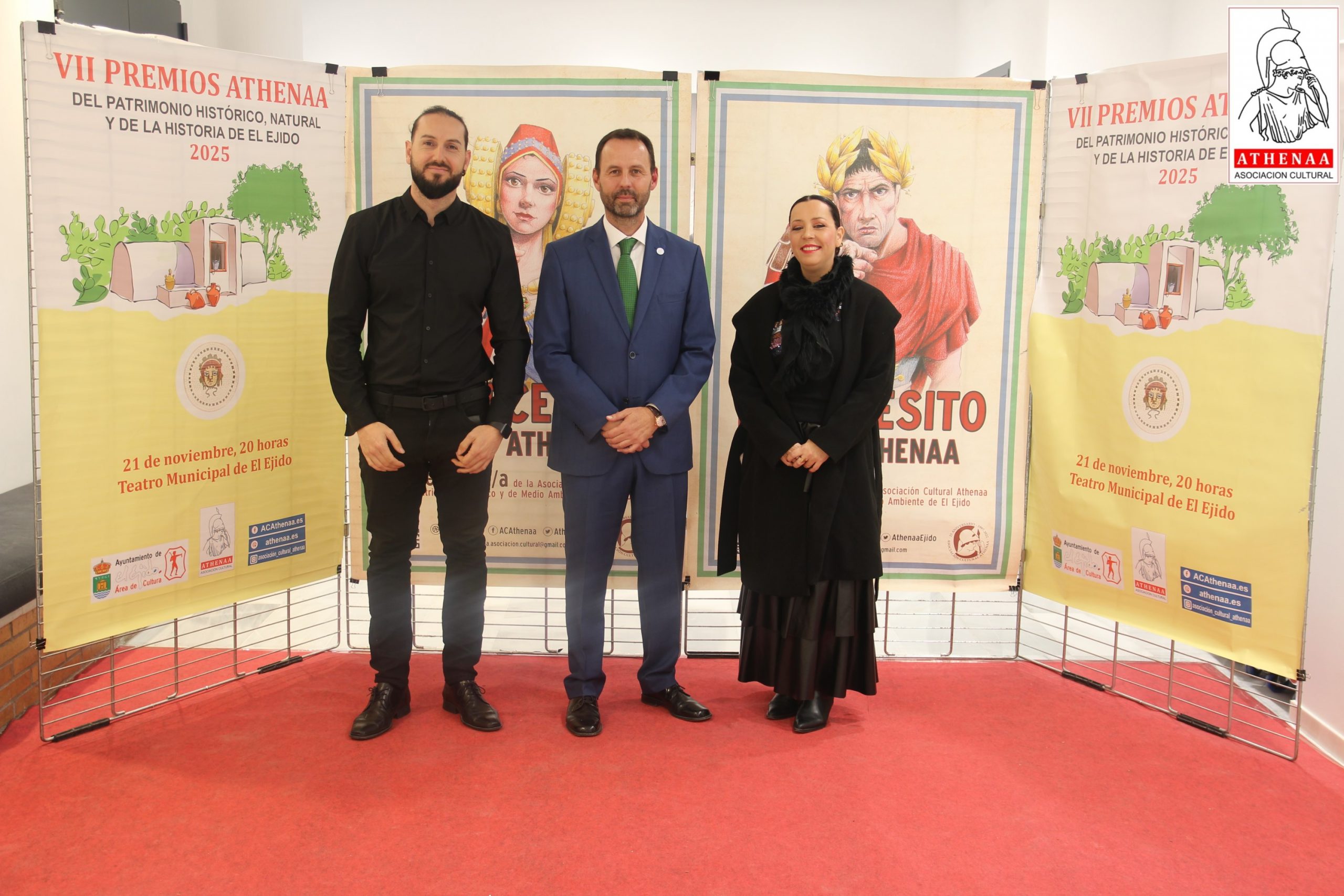 El Teatro Municipal de El Ejido ha acogido el pasado viernes día 21/noviembre la celebración de la VII GALA de entrega de los PREMIOS ATHENÁA sobre el Patrimonio Histórico, Natural y de Historia de El Ejido, correspondientes al año 2025, organizada por la Asociación Cultural «ATHENÁA«, que ha contado con la colaboración del Ayuntamiento de El Ejido.