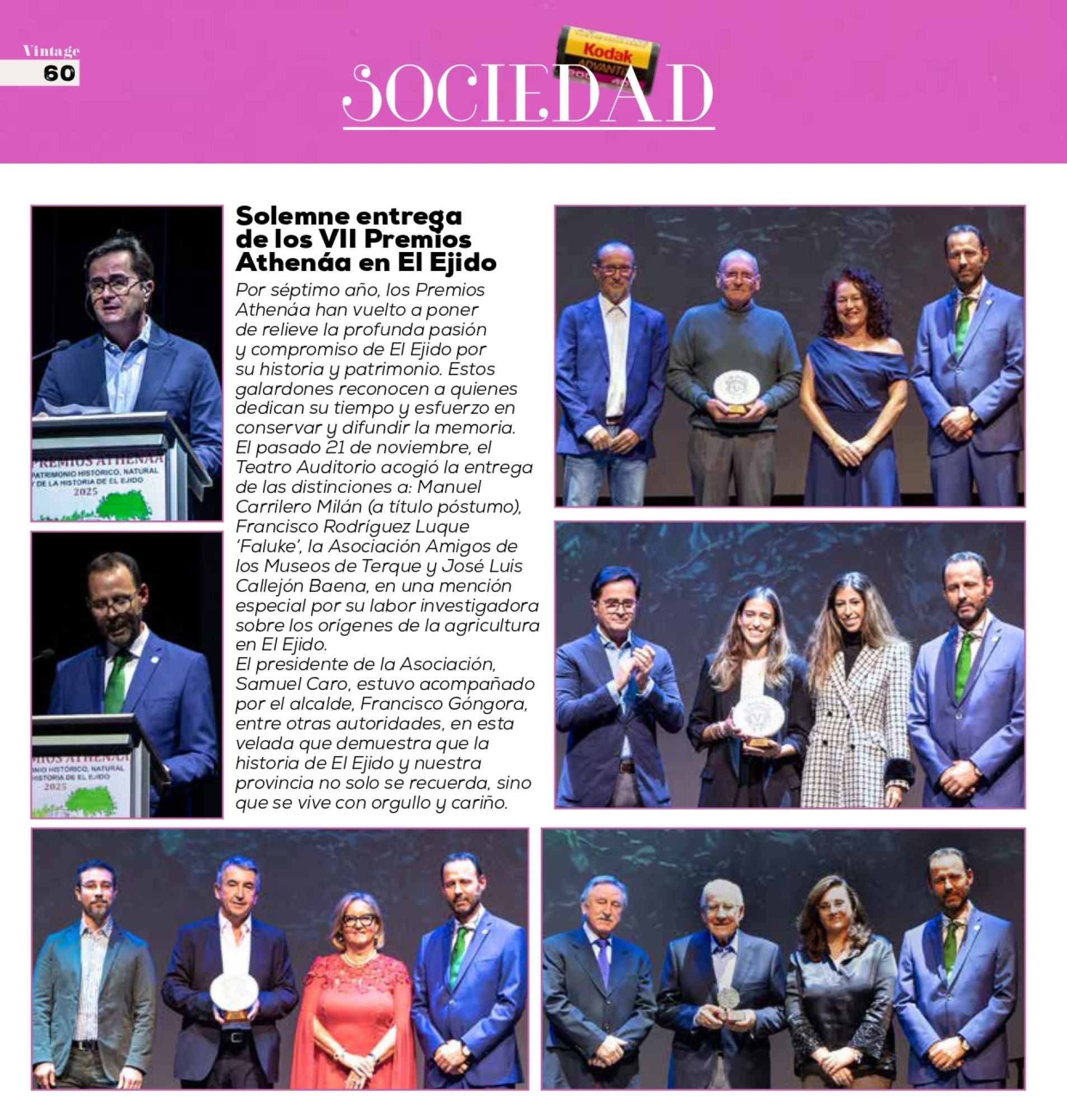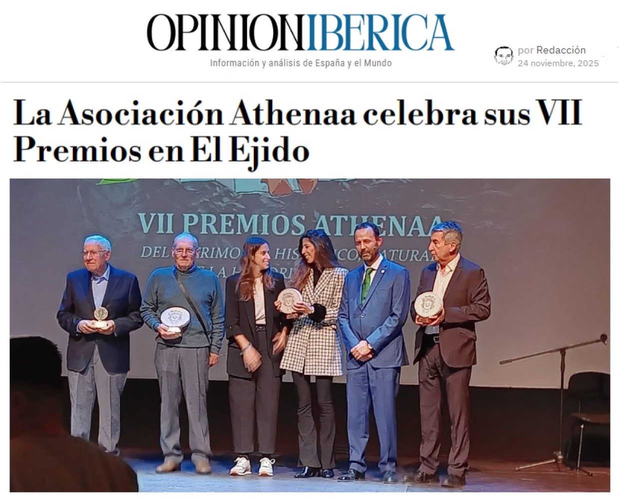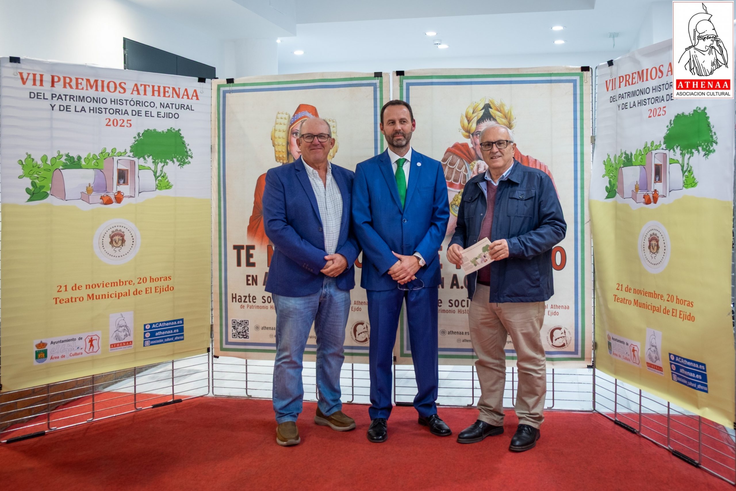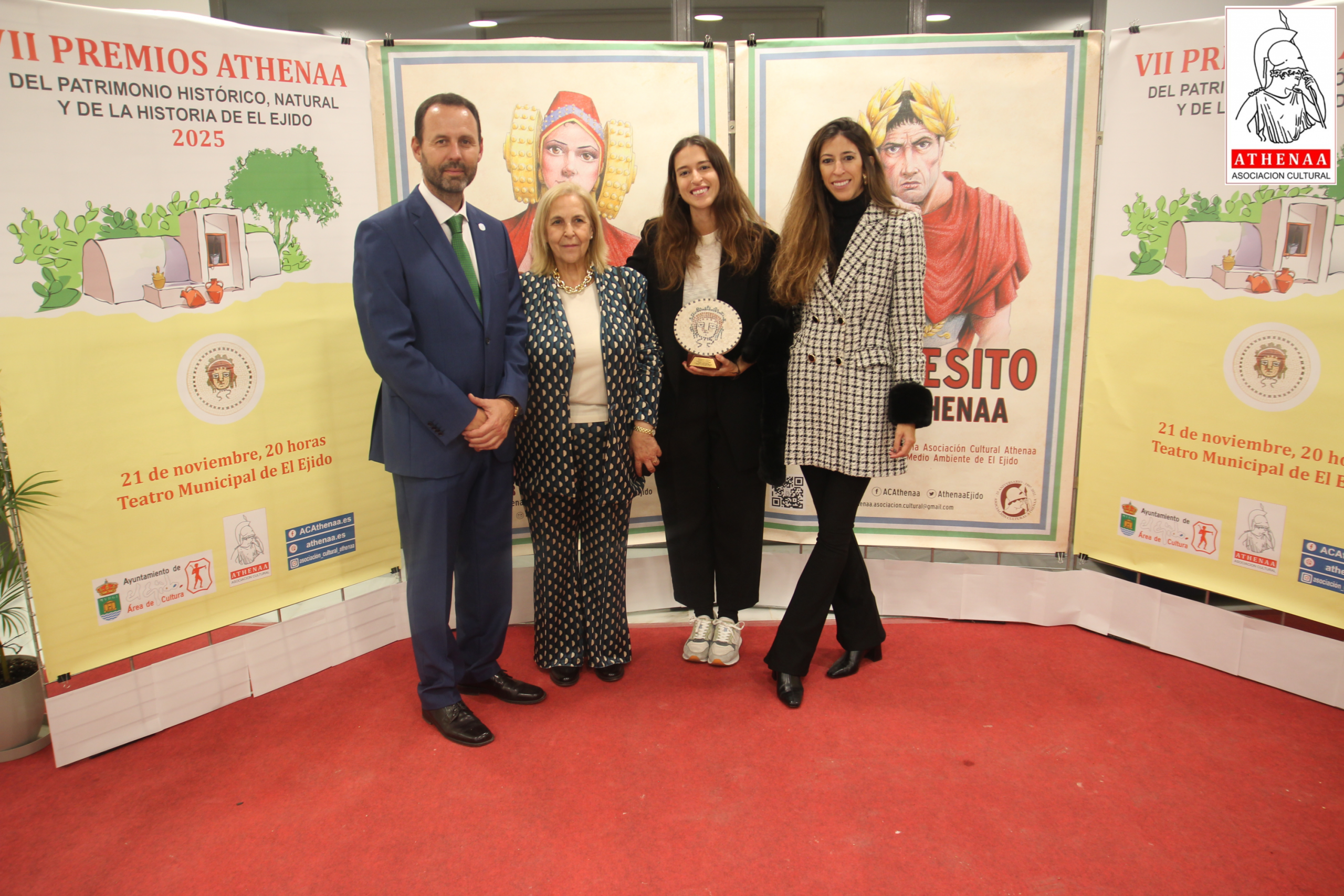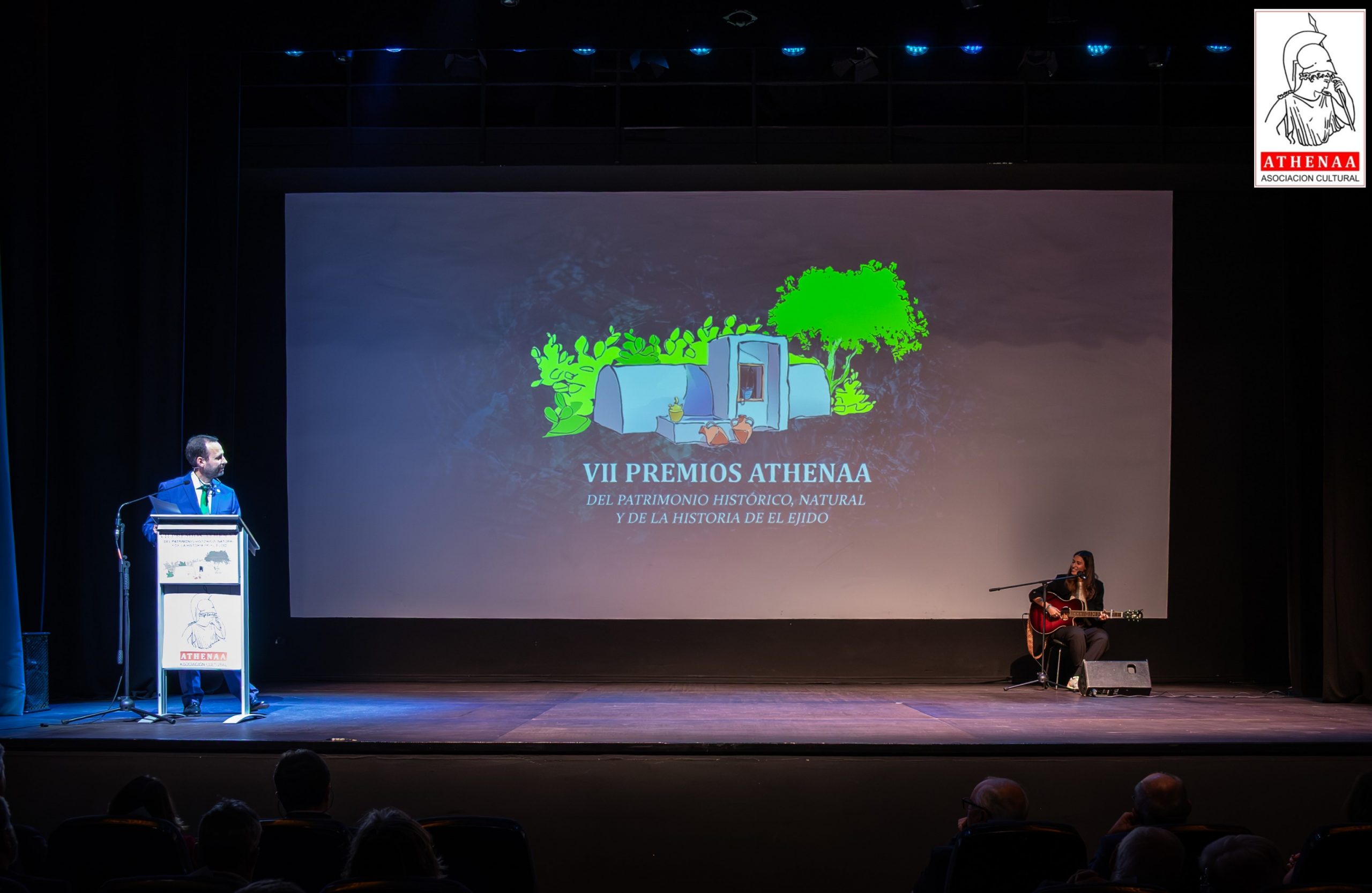 El Teatro Municipal de El Ejido ha acogido el pasado viernes día 21/noviembre la celebración de la VII GALA de entrega de los PREMIOS ATHENÁA sobre el Patrimonio Histórico, Natural y de Historia de El Ejido, correspondientes al año 2025, organizada por la Asociación Cultural «ATHENÁA«, que ha contado con la colaboración del Ayuntamiento de El Ejido.
