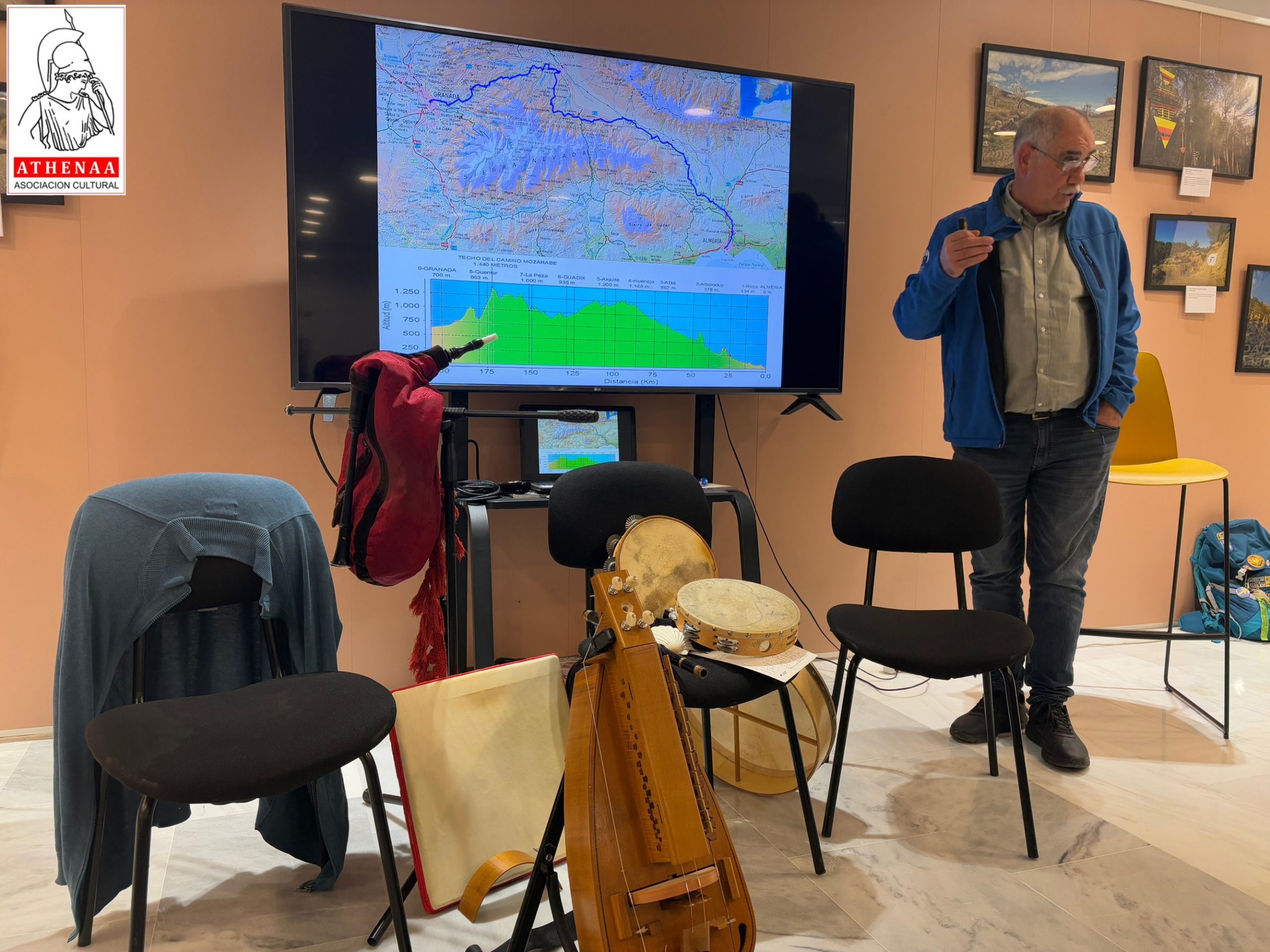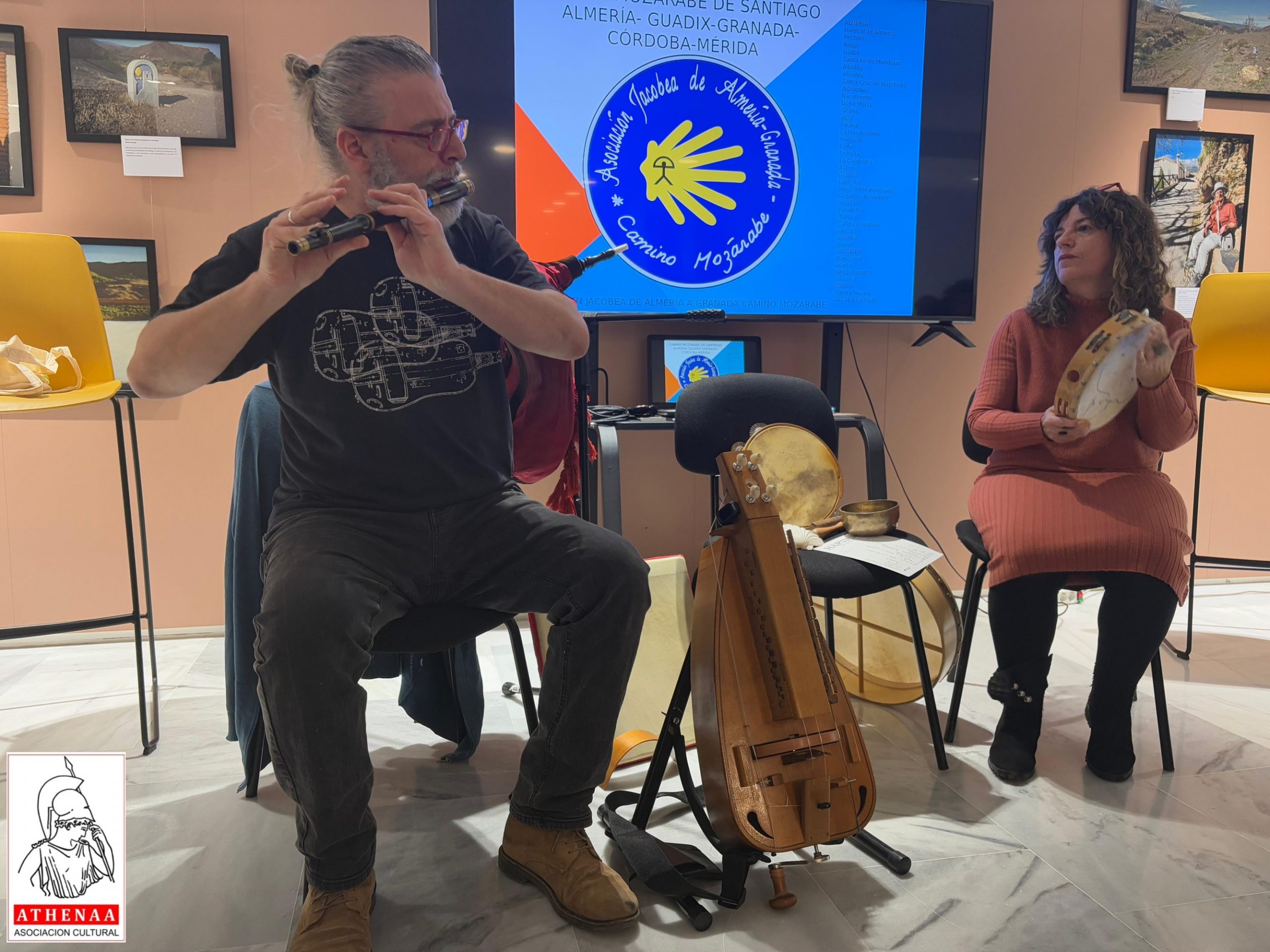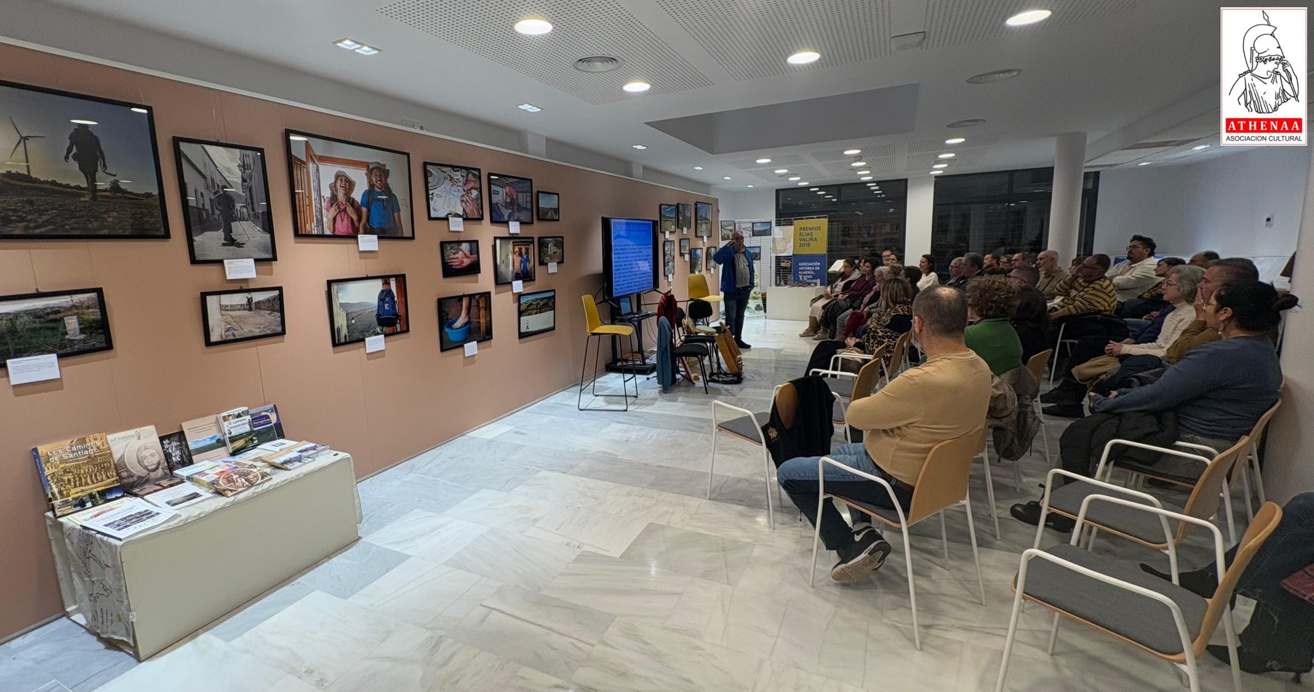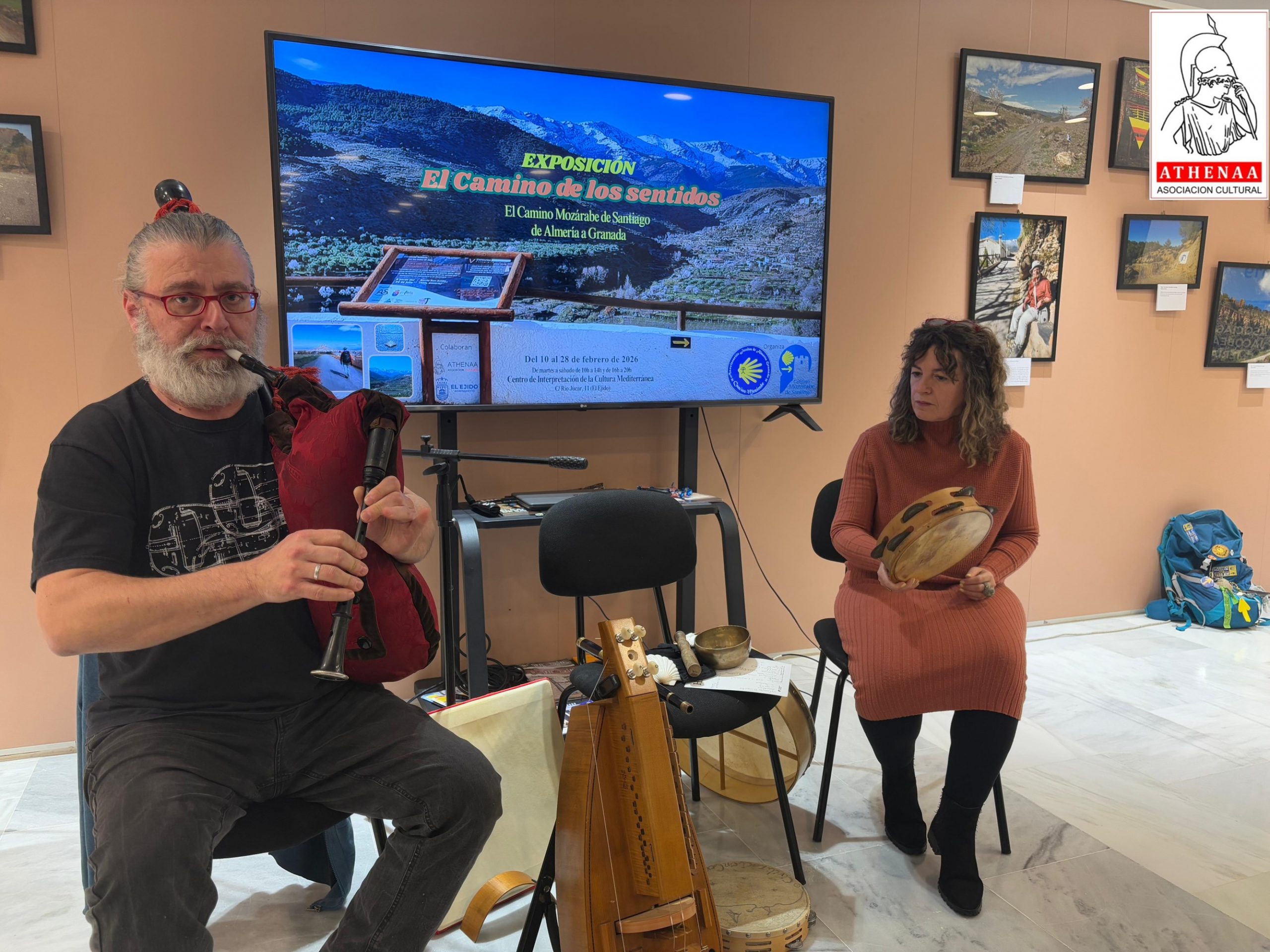 La inaguración arrancó con música gallega en directo por el grupo «Os Silveiras» de Maribel Úbeda y Pedro Silva, actuando como presentador y director del acto Samuel Caro, miembro de la directiva de la Asociación Jacobea de Almería-Granada Camino Mozárabe, a la par que presidente de Athenáa. Se encontraban presentes la Concejal de Cultura, Elena Gómez y el Vicepresidente de la Asociación Jacobea Almería Granada Camino Mozárabe, Francisco Fuentes, así como varios miembros de la Asociación: Mónica López, Nely, Chema, Juanma y Antonio, y una gran representación de socios de Athenáa.