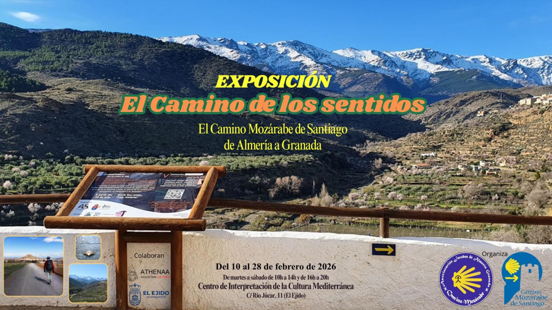 El pasado día 11 de febrero se inauguró en el Centro de Interpetración de la Cultura Mediterránea la exposición ‘El Camino de los Sentidos’, que invita a descubrir el Camino Mozárabe de Santiago, desde Almería hasta Granada. La muestra que estará en exposición hasta el día 28 de febrero, está organizada por la asociación Jacobea de Almería y Granada Camino Mozárabe de Santiago, con la colaboración del Ayuntamiento de El Ejido y la Asociación Cultural Athenáa.