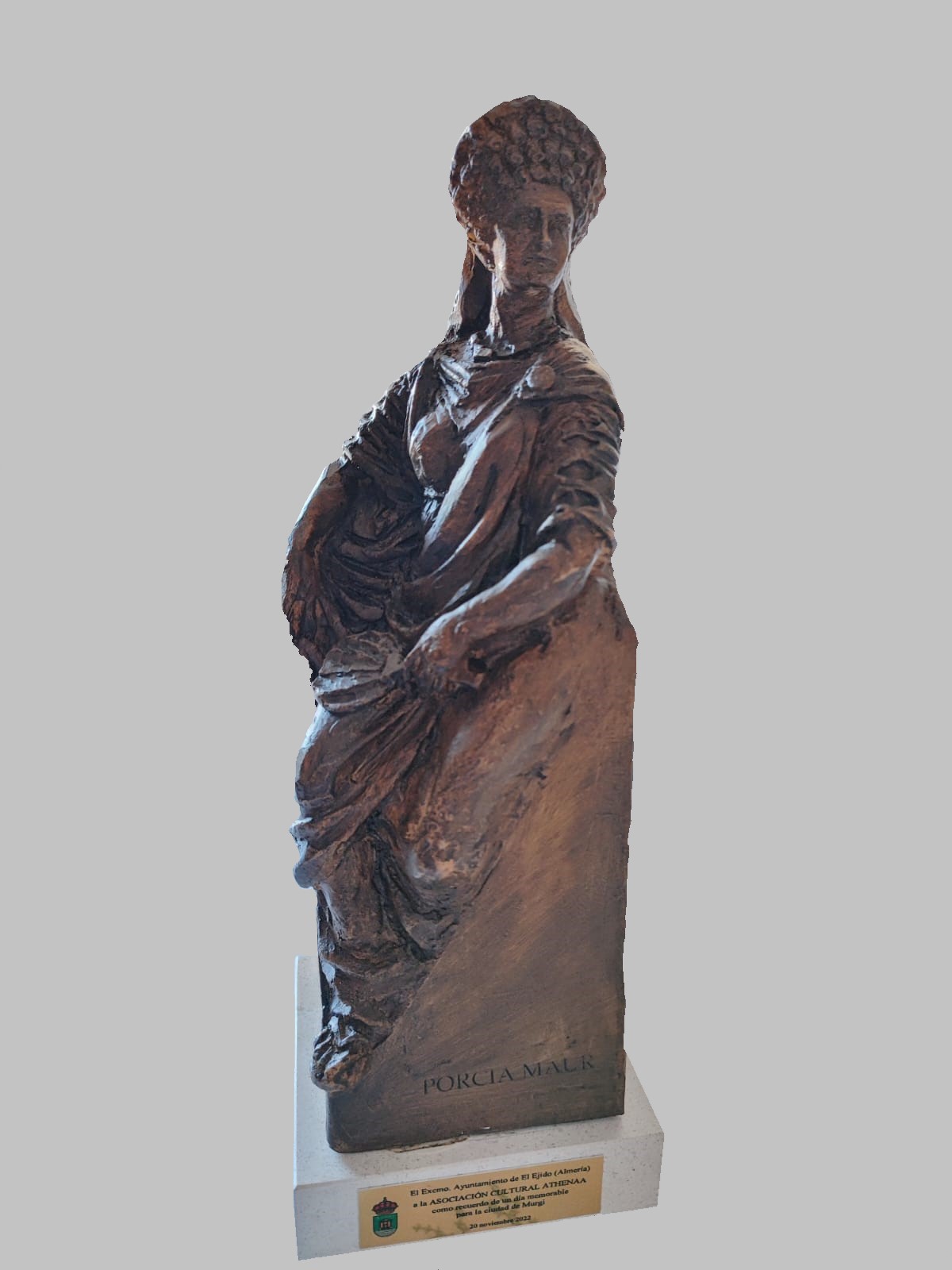 En el acto Fina Arqueros, en nombre de Athenaa, recogió de manos del alcalde de El Ejido una réplica de la escultura de Porcia Maura, en reconocimiento por la labor que realiza esta asociación con la difusión del legado histórico de Murgi.