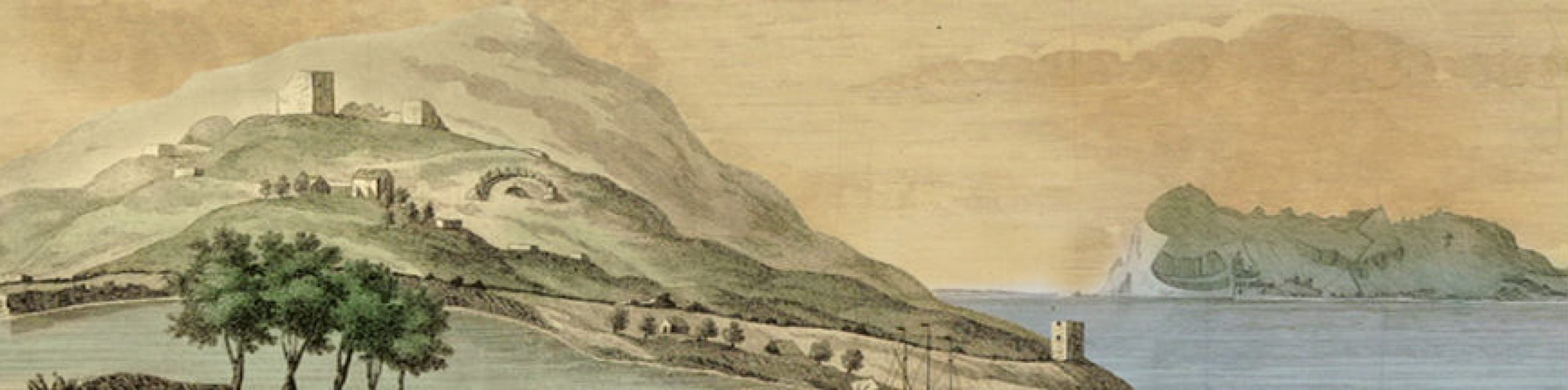 Las ruinas de Carteia coronadas por la Torre de Cartagena en el s. XVIII (grabado Francis Carter).