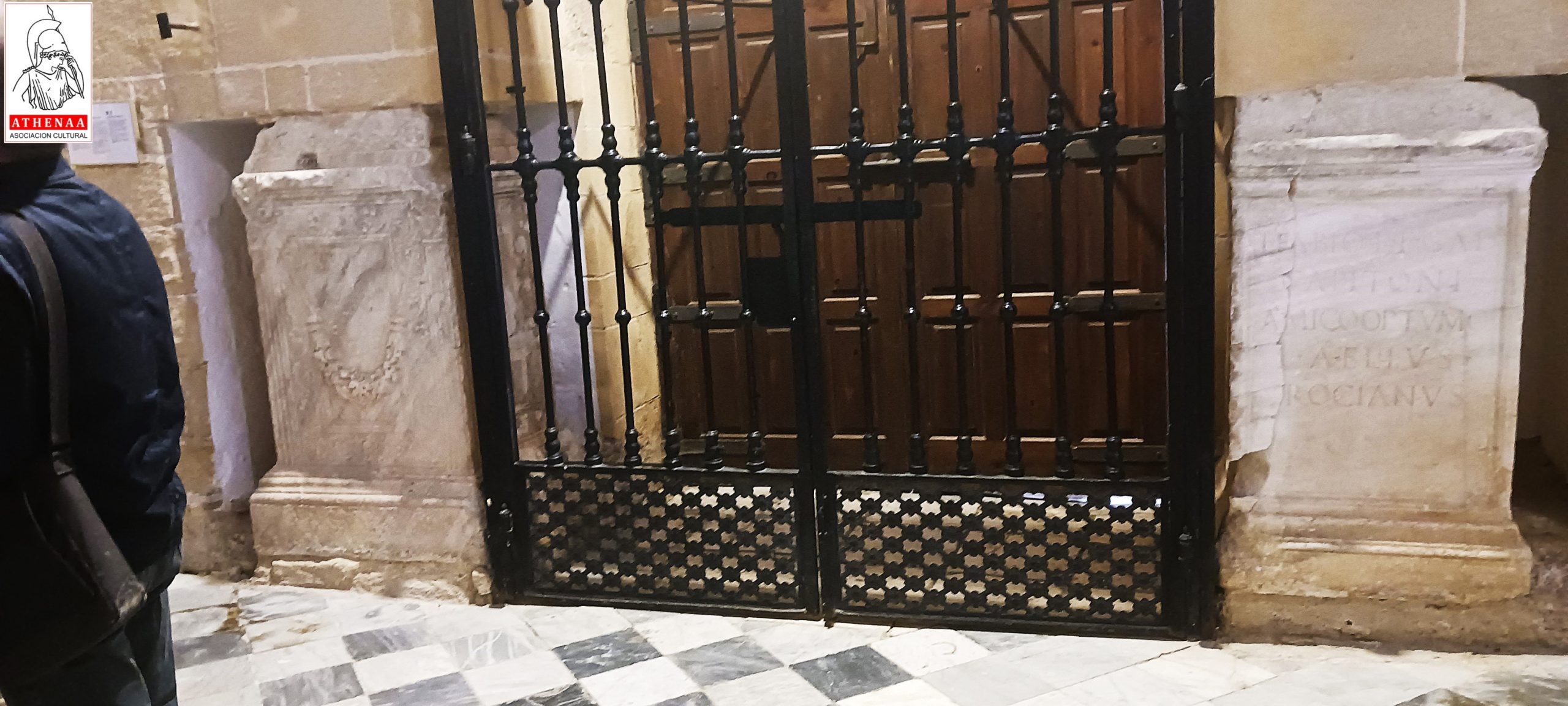 Entramos en el Conjunto Arqueológico Romano, el edificio consta de varios niveles de altura y en la misma entrada hay unas escaleras que nos lleva al nivel más bajo donde nos encontramos los restos de un pequeño tramo de una de las calzadas principales con su alcantarillado, varios restos de dependencias romanas y cuatro galerías de un criptopórtico.