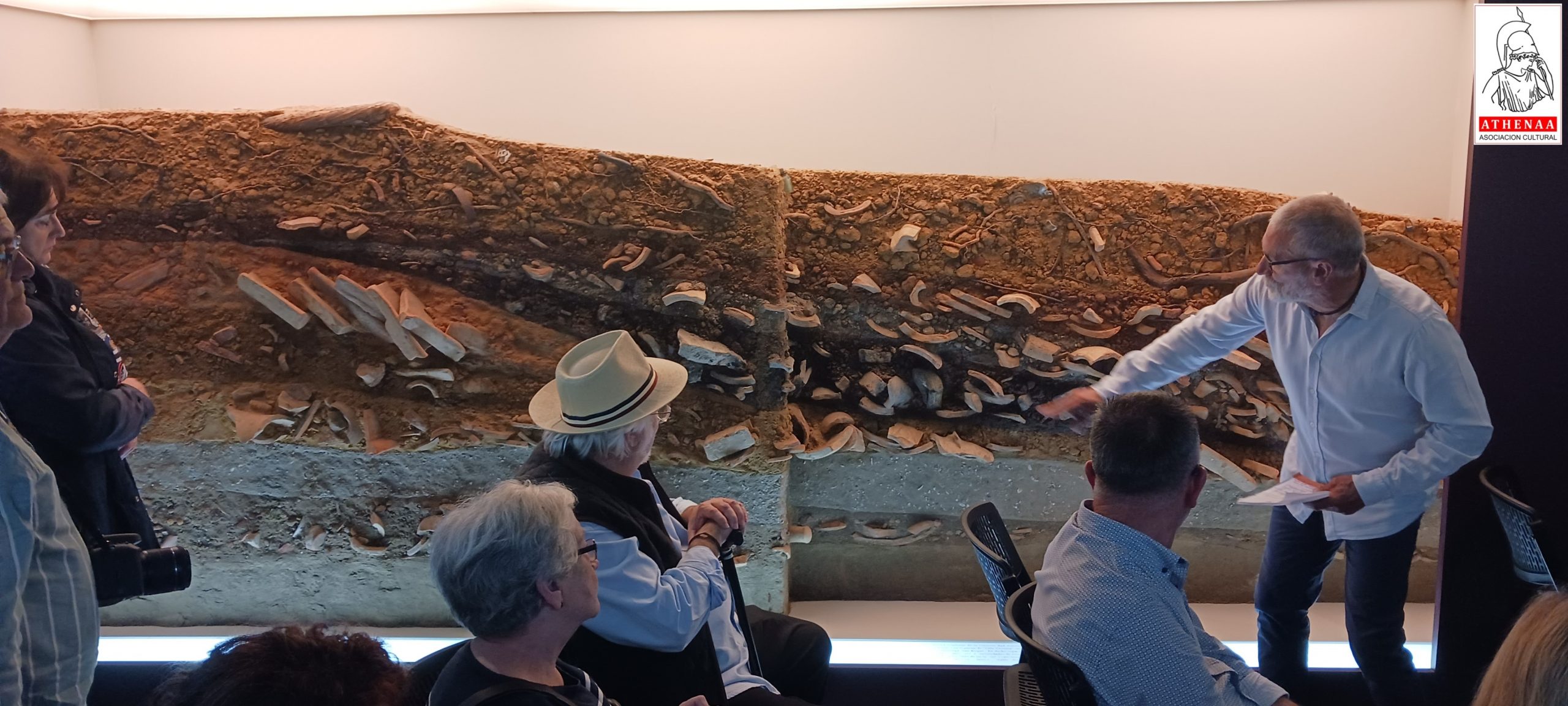 Como final del itinerario romano del museo podemos disfrutar de una recreación de estratigrafía arqueológica que muestra las diferentes capas que los arqueólogos han ido desenterrando en las excavaciones de Carteia, y Miguel Ángel aprovecha para explicar como se puede distinguir a la vista diferentes épocas del yacimiento.