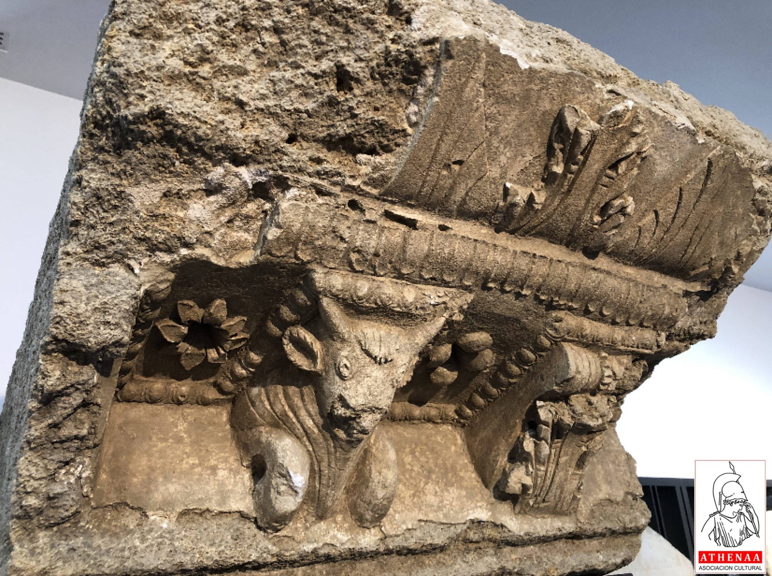 El elemento más espectacular por su gran calidad es el Bucráneo, un relieve en mármol que representa un cráneo bovino decorado con cintas onduladas y guirnaldas de hojas y frutos, todo enmarcado por un cordón de motivos florales. Una pieza exquisita que formaba parte de un monumento funerario o conmemorativo que se repetía en la arquitectura civil y oficial de las ciudades romanas. Apareció de manera fortuita en 1840 en el paraje Huerta del Gallo en un camino entre la barriada alfarera de Carteia y el Peñón. Una obra de tan alto valor en la época viene a demostrar la importancia y rango que tenía la ciudad de Carteia.