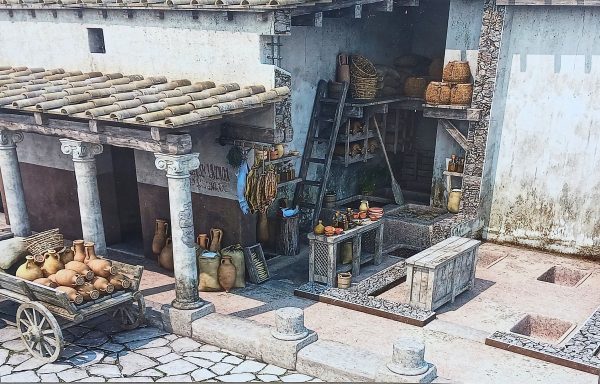 Recreación idealizada este Plaza del Foro con soportales y tiendas. (italicaromana.blogspot.com)