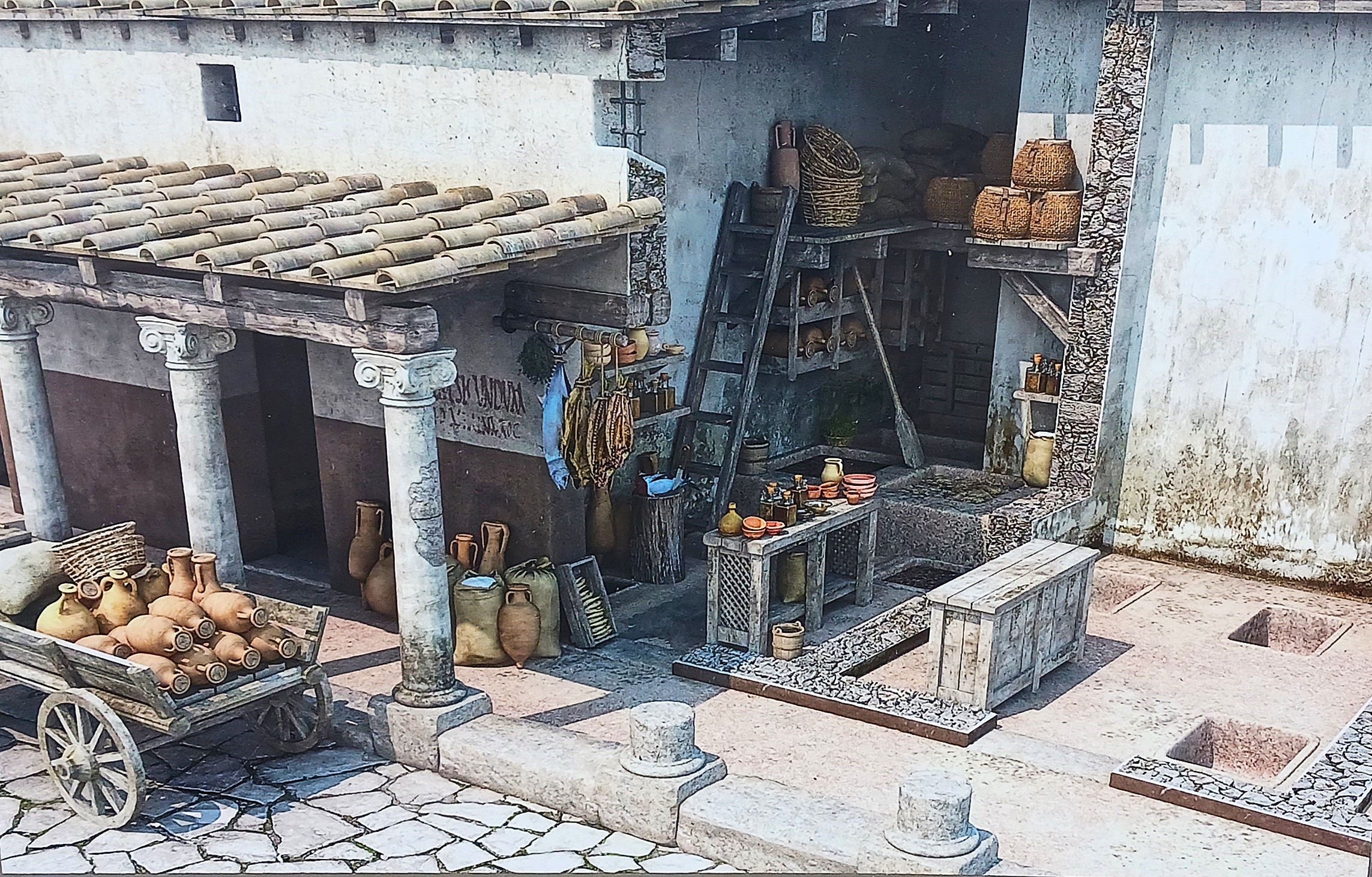 Restos del antiguo Foro imperial con un pozo y abrevaderos del siglo XVIII.