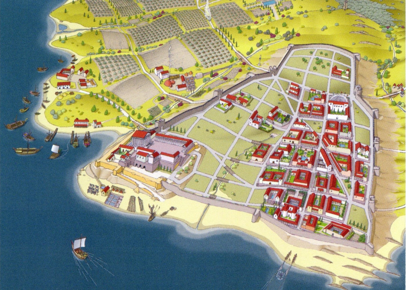 • – La zona baja, más cercana a la playa, destinada principalmente al sector industrial (salazón de pescado y fabricación de garum).