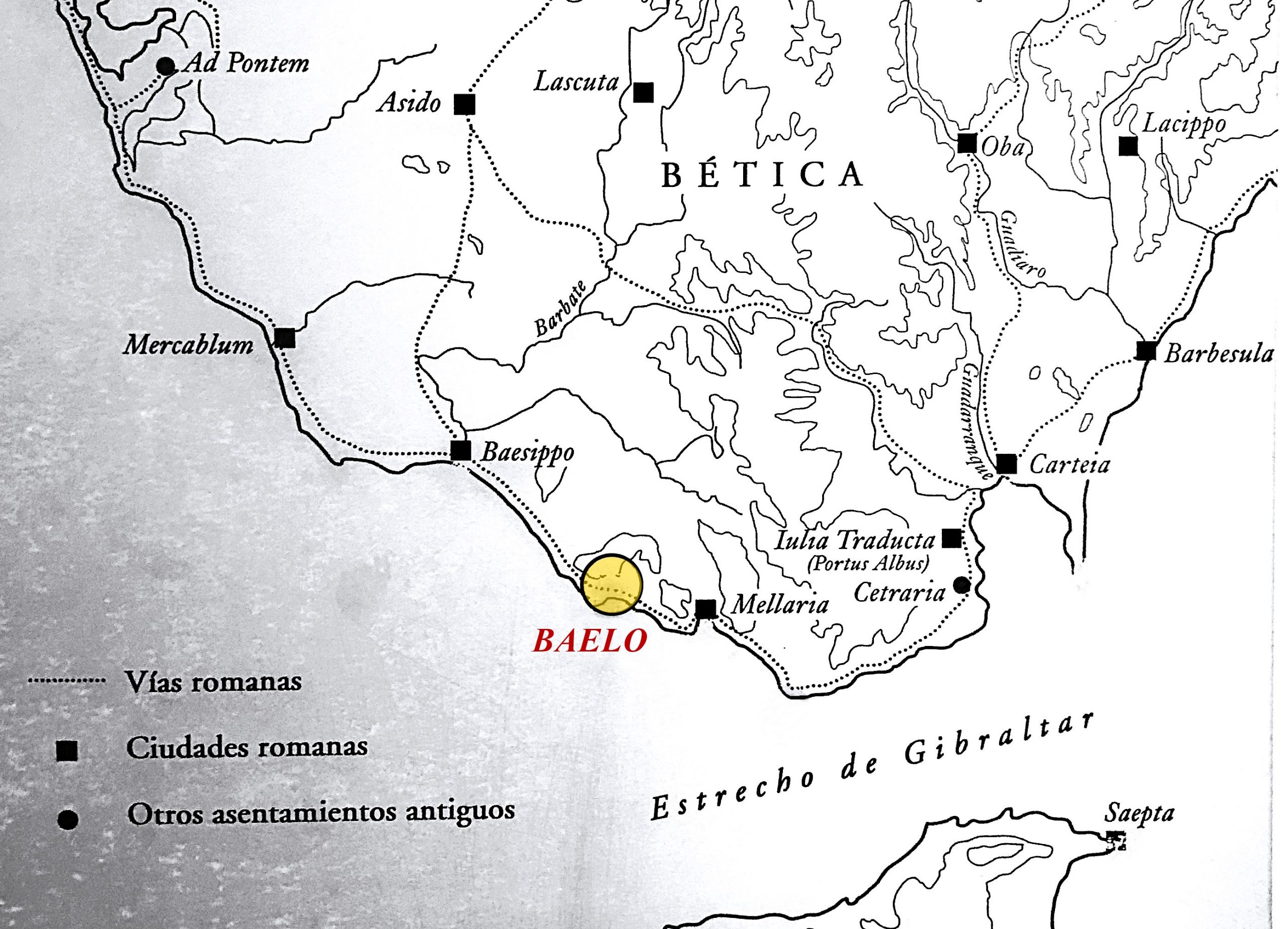 Baelo es un puerto donde generalmente se embarca hasta Tingis (Tánger), en Mauritania. Es también un emporio que tiene fábricas de salazones...”