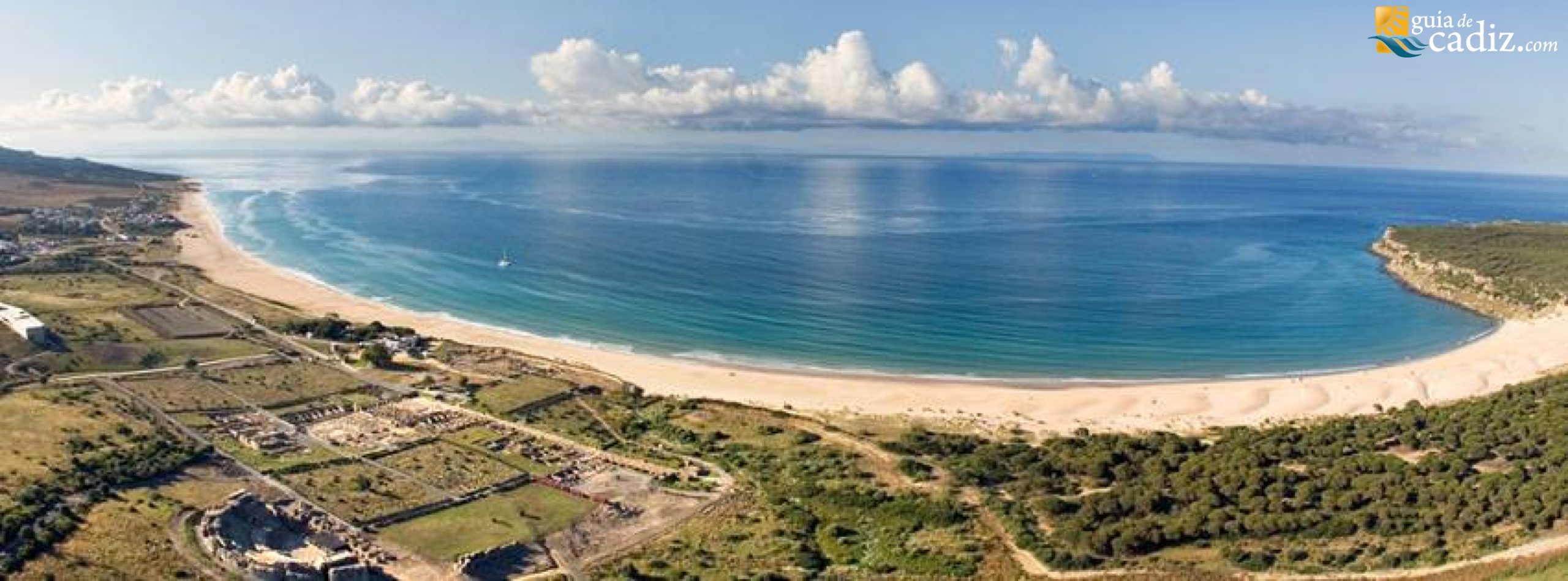 Foto aérea panorámica de la ensenada de Bolonia. (guiadecadiz.com)