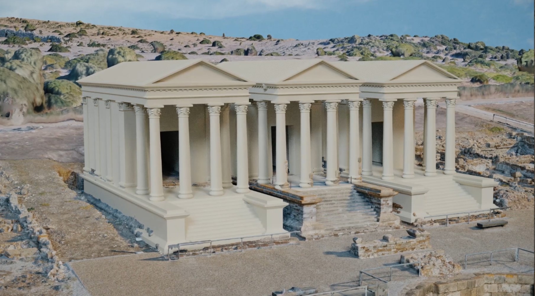 Conjunto de elementos arquitectónicos de un edificio monumental augusteo.